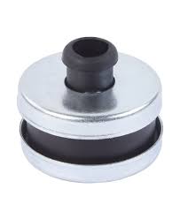 Resilient rubber grommet with dual steel load distribution cups and extended sleeves. Acts as acoustic separator between suspension rods and trapeze channel or equipment suspension brackets